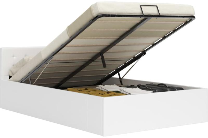 vidaXL fehér műbőr ágykeret hidraulikus tárolóval 160 x 200 cm